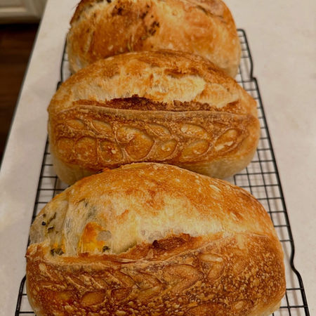 Mercedes bakes every loaf and sourdough treat with passion, care, and love. All Mercedes’ bakes are exclusively sourdough; from bread to cinnamon rolls to cookies and brownies. Mercedes’ love language is baking. She enjoys the simplicity of sourdough and loves to try and experiment with new flavors, flours types, and baking techniques.